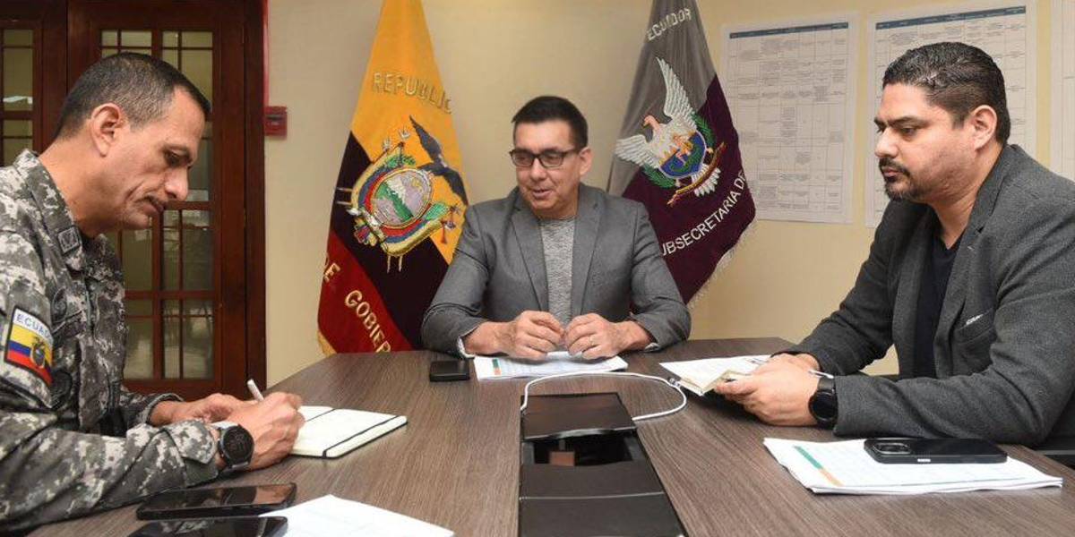 Fausto Buenaño se reunió este domingo con el comandante general de la Policía Nacional, el viceministro de Seguridad Ciudadana y otros oficiales.
