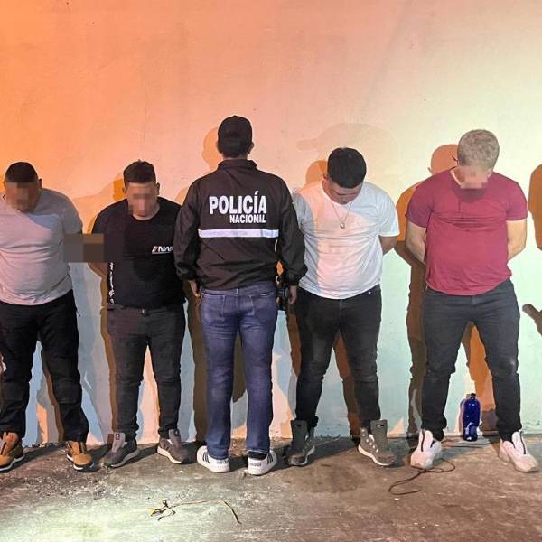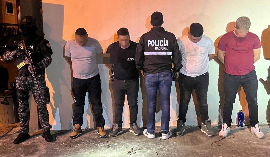 Imagen de la captura de alias Fede, Danny Javier M., Josue Aldemar A., y José Oswaldo T., capturados en una urbanización de Daule, la noche del 29 de enero del 2025.( )