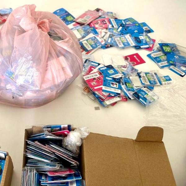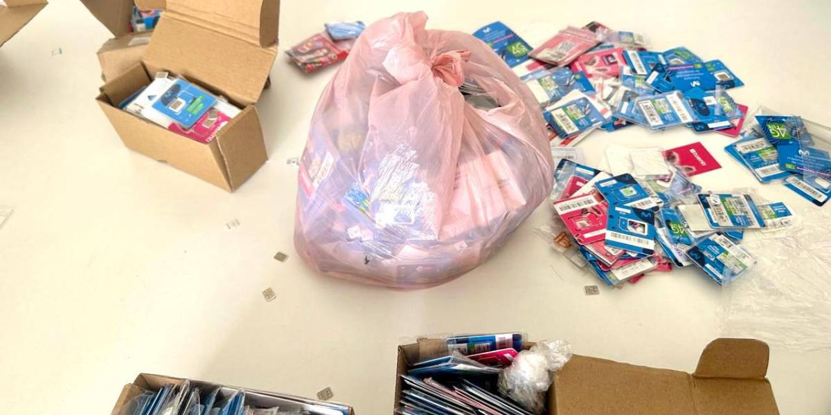 En la empresa se encontraron numerosos chips de distintas operadoras, desde donde se hacían las llamadas extorsivas. ( )