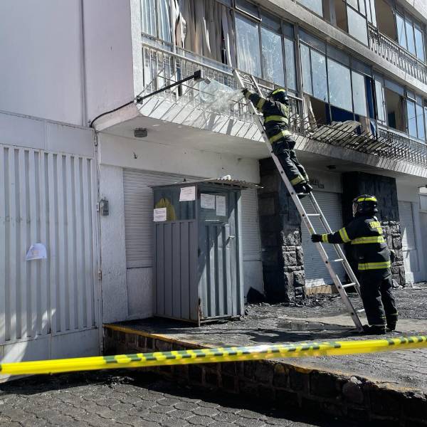 Personal del Cuerpo de Bomberos de Quito acudió al edificio el SNAI para inspeccionar la zona del atentado.( )