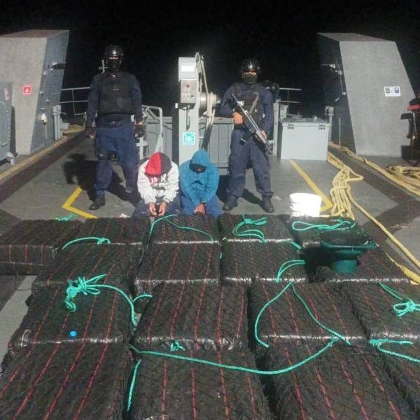 Miembros de la Armada Nacional interceptaron, en la Zona Económica Exclusiva Insular, a una embarcación con dos personas y 17 bultos con varios paquetes de droga, con posible destino a México.