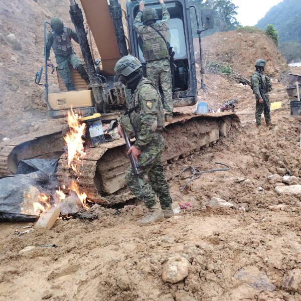 Destruir la maquinaria pesada encontrada en los campamentos de minería ilegal es la estrategia de las Fuerzas Armadas para frenar la expansión de esa actividad. Los uniformados enfrentan trabas judiciales para que esos equipos decomisados pasen a manos del Estado.