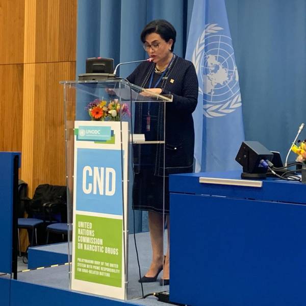 La canciller ecuatoriana está en Austria donde es parte de la edición número 67 de la Comisión de Estupefacientes de la ONU.