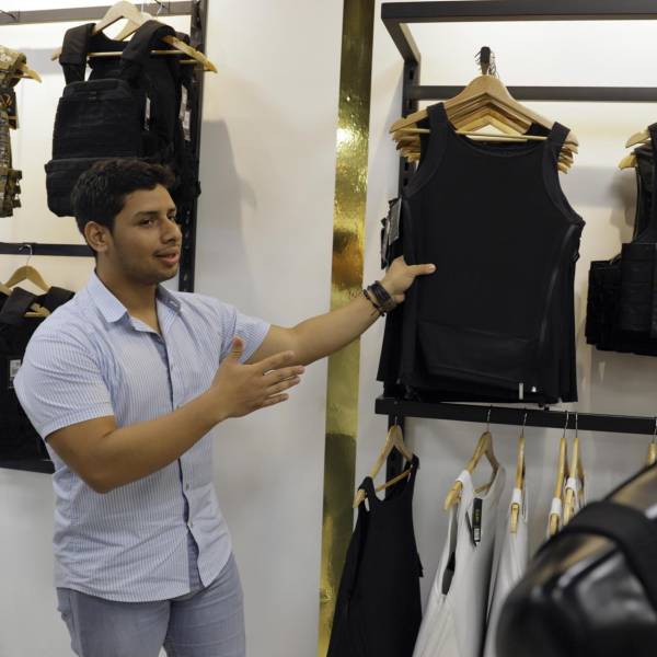 "Lo que más nos piden son las 'Tank-Top' por tratarse de algo discreto, que permite a ejecutivos, empresarios y políticos sentirse seguros porque soporta el impacto de balas de 9 milímetros y .44 Magnum", explicó el jefe administrativo de la empresa, Rubén Camba.