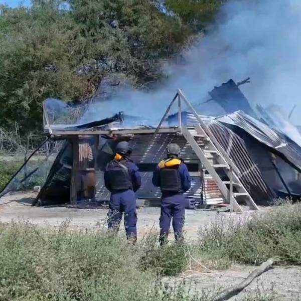 En segundos, la estructura fue incendiada. Según los agentes, funcionaba como centro de operaciones para contaminar contenedores de los buques mercantes que cruzan el canal internacional.