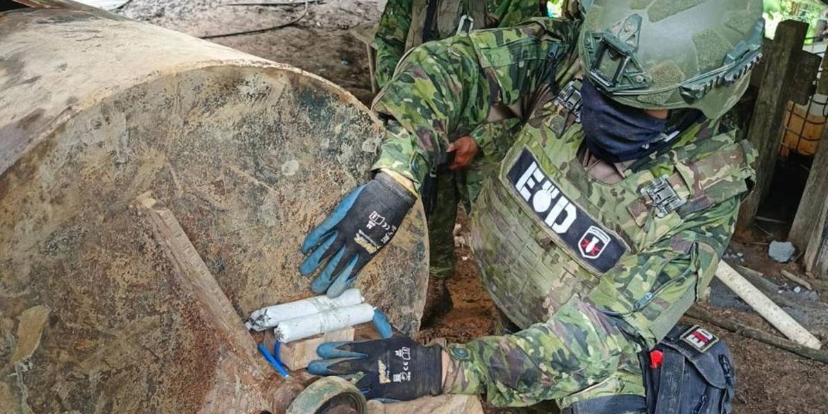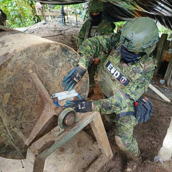 En el sector Río Verde Alto, Imbabura, el Ejército desmanteló un campamento de minería ilegal. En el lugar se procesaba material aurífero de forma ilícita y se incautó materiales y productos valuados en USD 250 000.