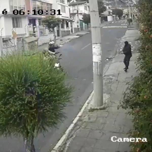 Una cámara de seguridad registró el lamentable hecho. Ahí se ve cómo los antisociales se movilizan en una motocicleta e intentan interceptar al guardia.