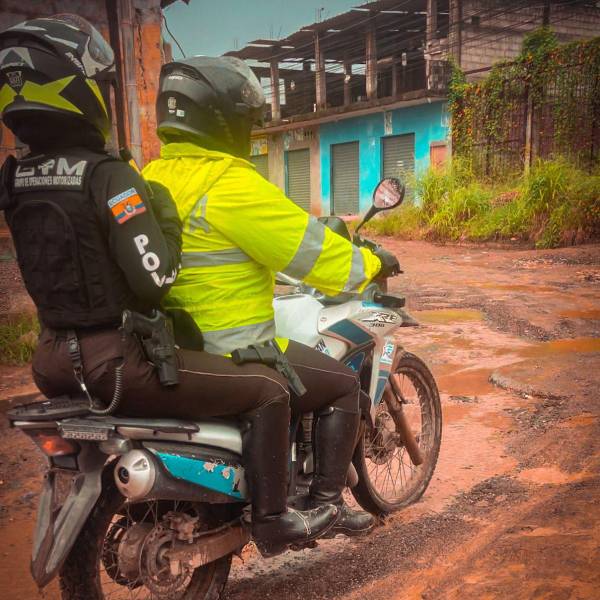 La policía en la parte posterior de la moto durante un patrullaje en Guayaquil.( )