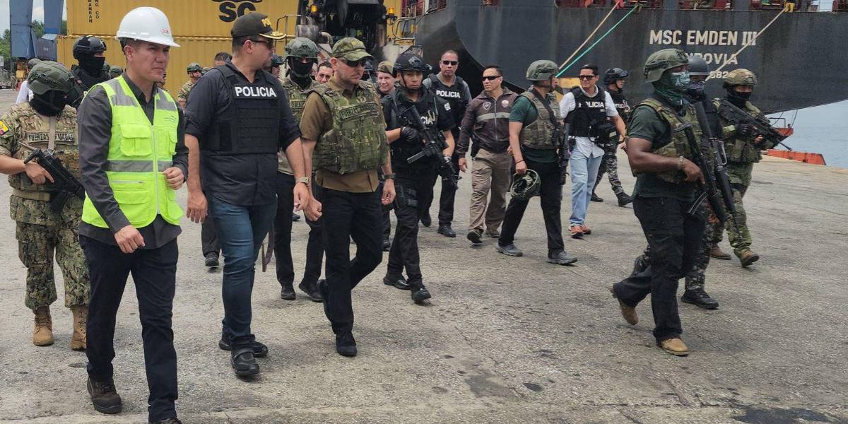 La mañana del domingo 16 de marzo de 2025, los ministros del Interior y Defensa recorrieron uno de los puertos ubicados en el sur de Guayaquil. Esto para constatar los operativos militares y policiales en las terminales portuarias para combatir el tráfico de drogas.