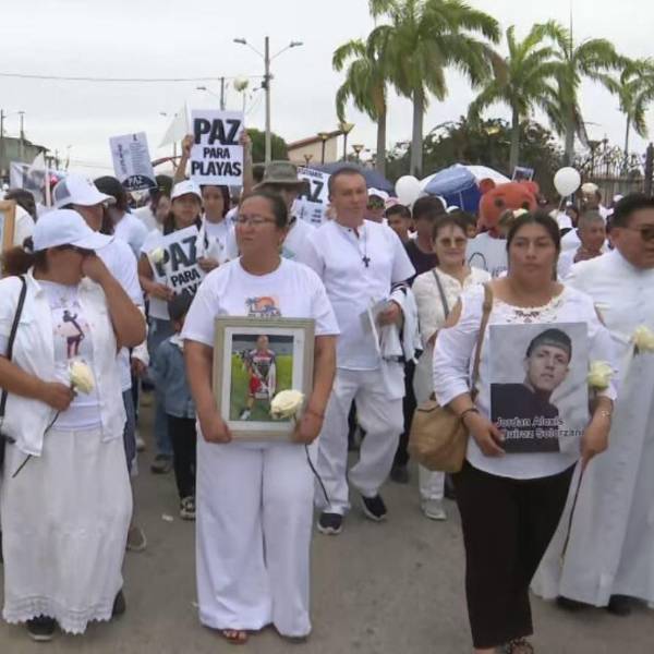 Entre ellos estaban familiares de los 11 acribillados el pasado 19 de julio dentro de un billar de esa localidad. La manifestación que se denominó Playas quiere paz recorrió 28 cuadras hasta llegar al malecón.