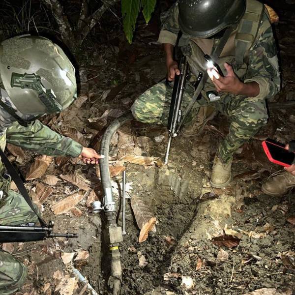 Según información oficial, la acción se inició tras una alerta por baja de presión en la línea del poliducto. Al llegar al sitio, los uniformados detectaron un camión estacionado junto a la tubería. Los ocupantes del vehículo huyeron hacia la vegetación al notar la presencia militar.