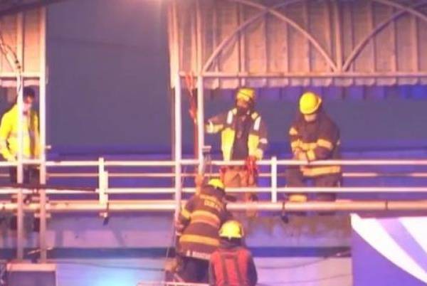 Personal de criminalística y cuerpo de Bomberos llegaron al sitio para retirar los cuerpos colgantes.