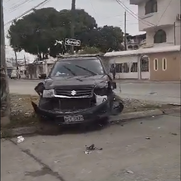 Imagen de un carro baleado y accidentado en Guayacanes, norte de Guayaquil.( )