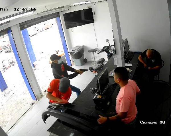 Un sujeto, cubierto con gorra y una mascarilla, entró al negocio y sacó rápidamente un arma de fuego y disparó a uno de los dependientes en repetidas ocasiones.