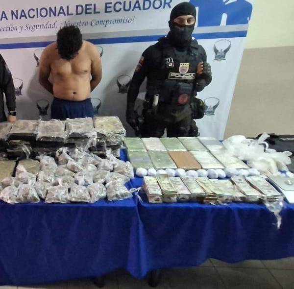 Guayaquil: un hombre fue capturado con 53 kilos de droga, dinero falso y prendas policiales