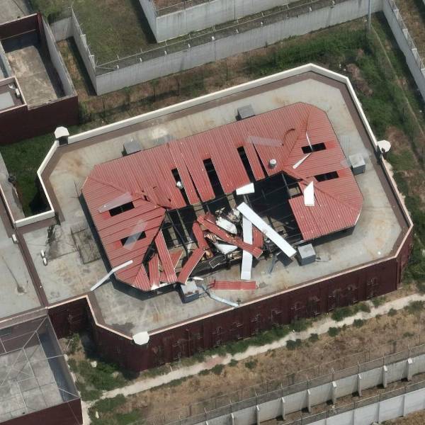 Imagen del techo de la cárcel La Roca después de la detonación de un dron bomba, este jueves 5 de septiembre del 2024.( )