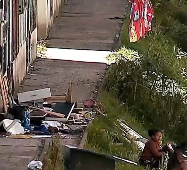 Piden presencia permanente de la policía y otras acciones. Los enseres que sacaron los moradores de la vivienda estaban en la vereda. Algunos fueron quemados. En el barrio quieren que los protejan para poder vivir en paz.