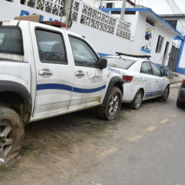En Esmeraldas, los uniformados mostraban la falta de, radio y pito balizas en uno de los vehículos.