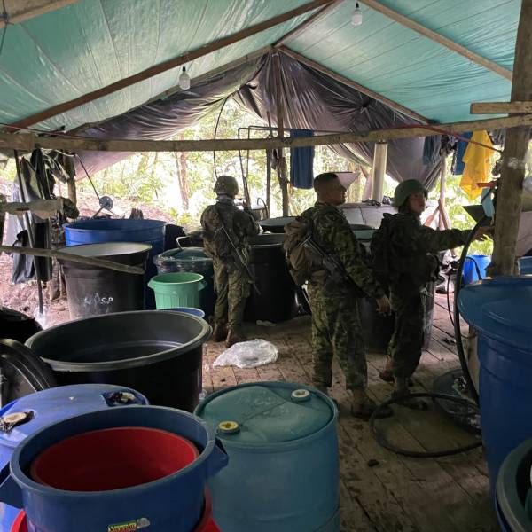 Las Fuerzas Armadas informaron este domingo 19 de febrero de la destrucción de un laboratorio de procesamiento de pasta base de cocaína, localizado en la provincia de Sucumbíos.