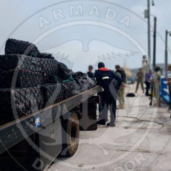 La lancha estaba cargada con 36 sacos que presumiblemente contienen cocaína con un peso aproximado de 1 500 kilos y un valor de unos 45 millones de dólares en el mercado norteamericano.