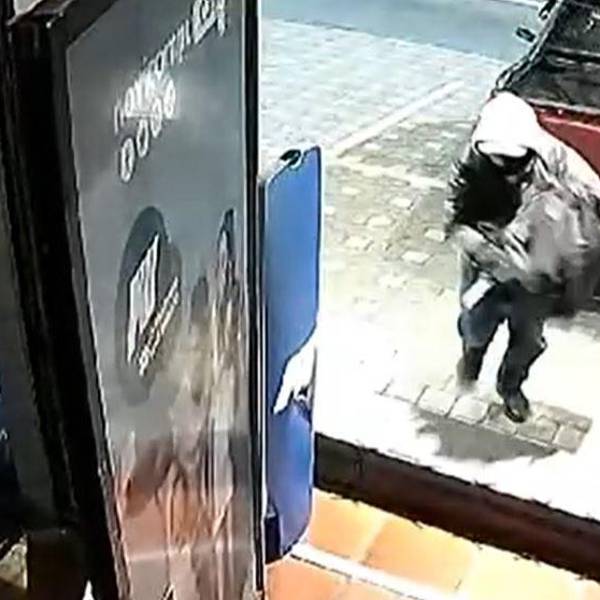 Tres de ellos se bajan y rompen la puerta del local. En el video se observa cómo los asaltantes ingresan al establecimiento, y toman de las vitrinas lo que más pueden. Sin importar el sonido de la alarma de seguridad.