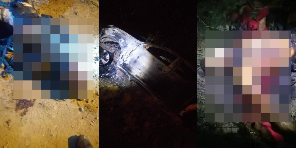 Según relató a los medios el teniente coronel Alejandro Zaldumbide, jefe de la Policía en El Carmen, junto a los cuerpos se halló una camioneta doble cabina, que también fue incinerada.