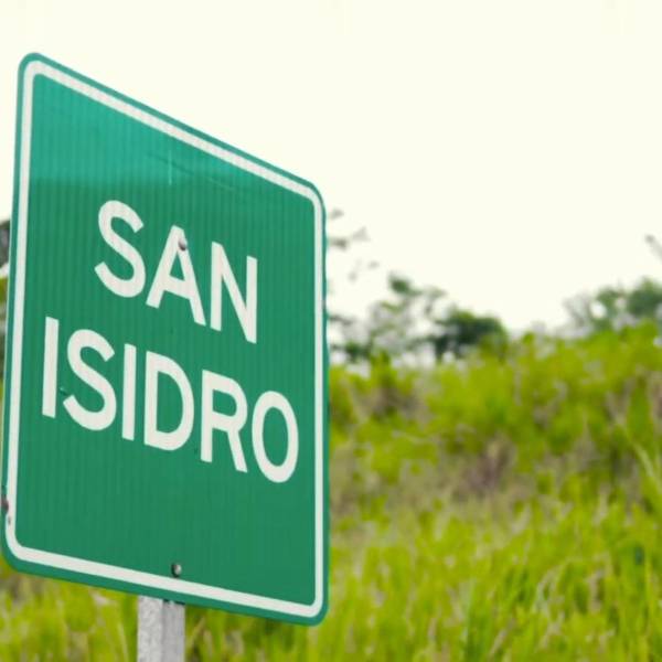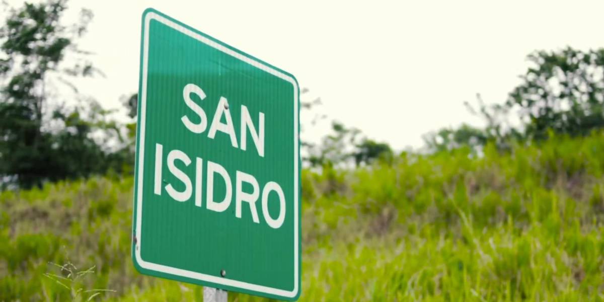 Foto de un cartel ubicado en la parroquia San Isidro, del cantón Sucre, en la provincia de Manabí.( )