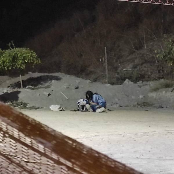 Imagen de una mujer junto al cadáver de una persona asesinada en una cancha de ecuavolley, la noche del 25 de octubre..( )