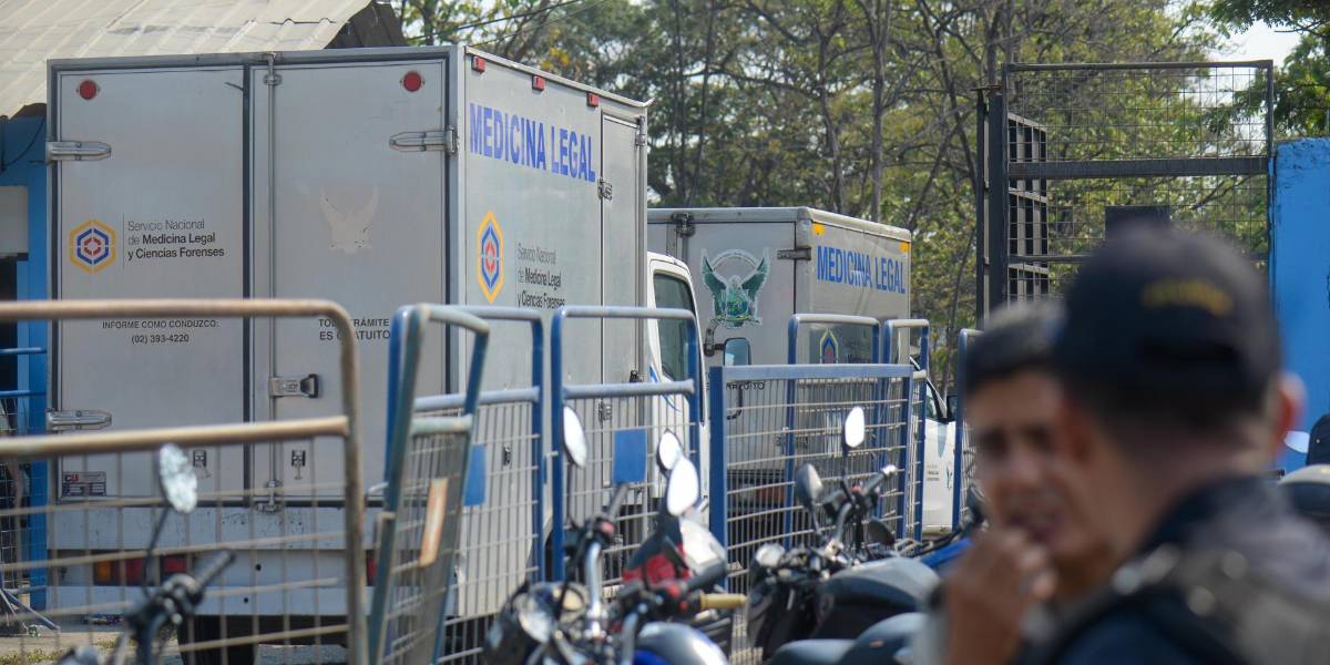 Fotografía de carros de medicina legal en la entrada de la Penitenciaría del Litoral, este martes 12 de noviembre en Guayaquil.( )