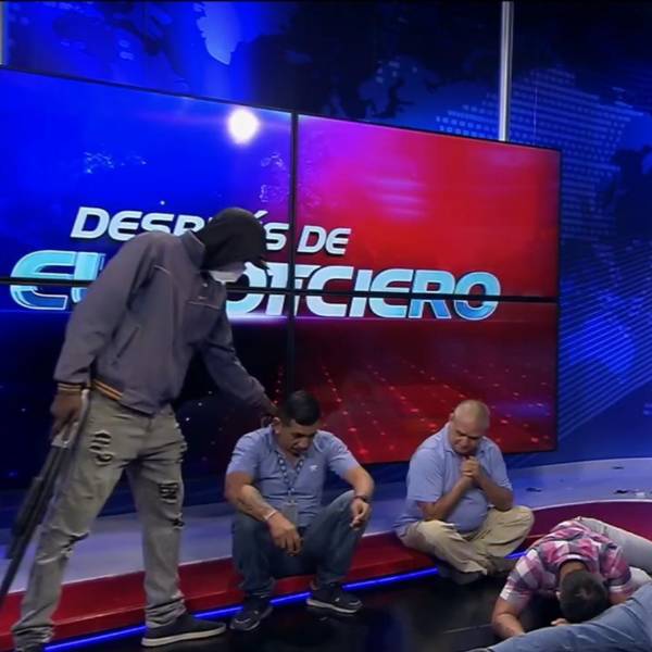 Los disparos se escucharon en vivo durante la programación del canal TC Televisión, ubicado en el centro de Guayaquil. Encapuchados irrumpieron en el set con armas largas mientras se desarrollaba el programa Después del Noticiero y sometieron a los presentadores y personal técnico.