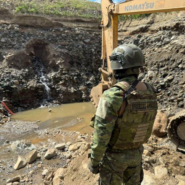 LEA: Las Fuerzas Armadas detienen a cuatro personas en un campamento de minería ilegal en Carchi