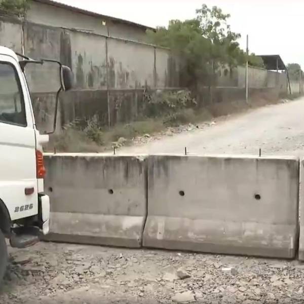 Imagen de muros instalados para bloquear el paso de una de dos rutas usadas por criminales en Durán.( )