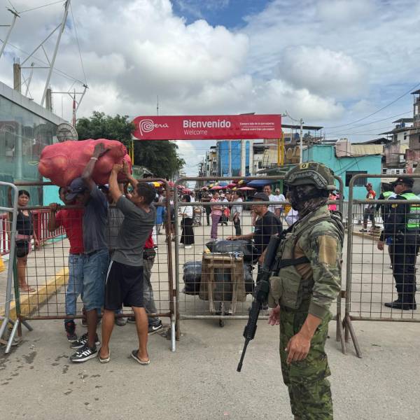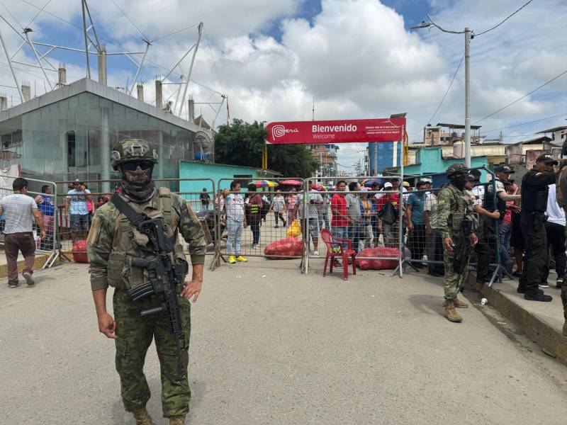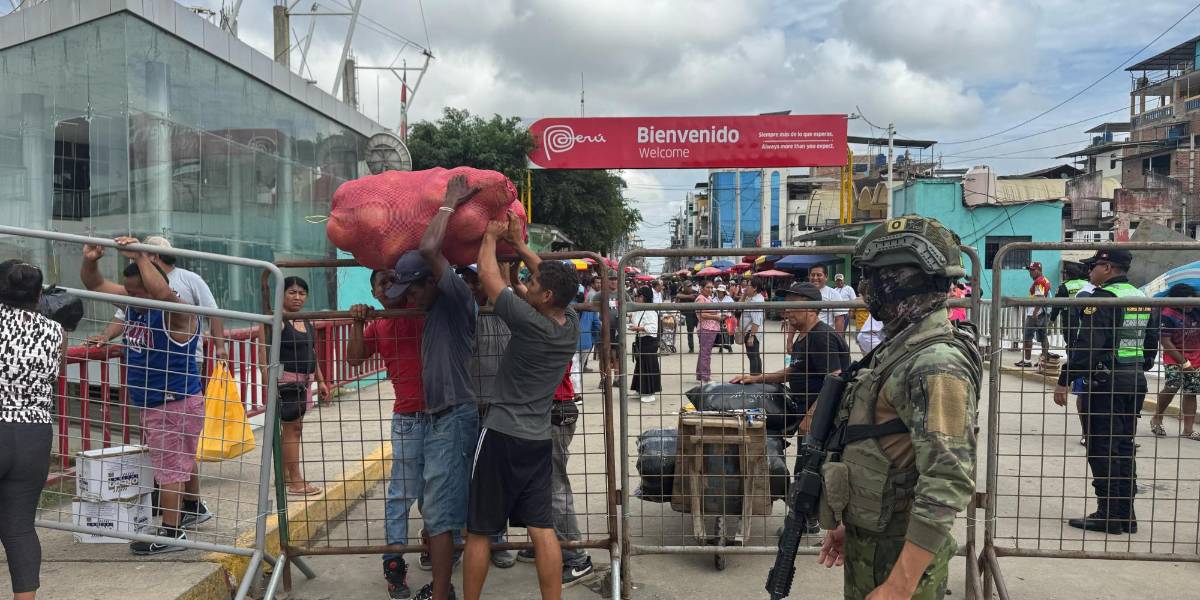 En el paso internacional, que conecta Huaquillas (Ecuador) con Aguas Verdes (Perú), se instaló un puesto de control fijo conformado por 20 militares y 10 policías. Solo se permite el paso a quienes presenten cédula ecuatoriana. Pese a las cercos metálicos, el comercio no se detuvo.