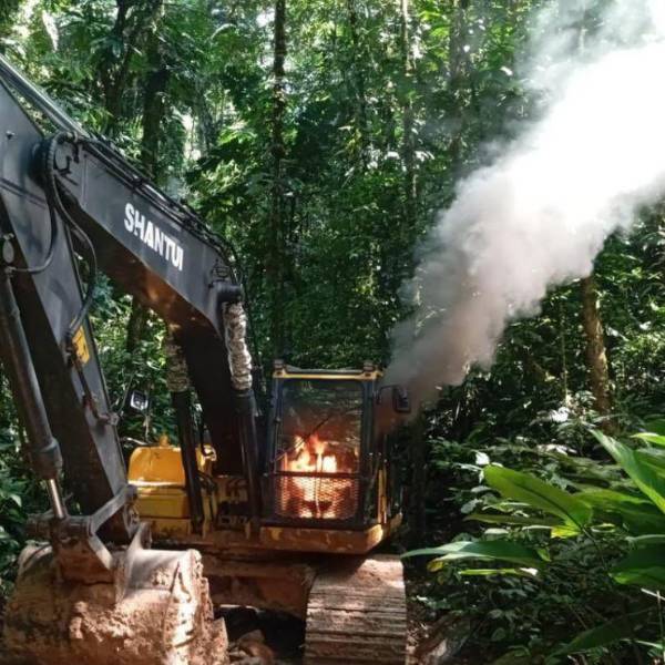 Militares incendiaron las retroexcavadoras que eran usadas para la minería ilegal. ( )