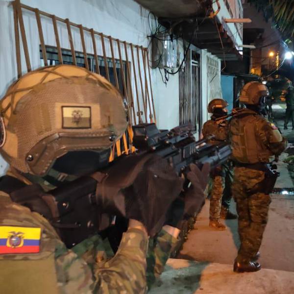La Fuerza de Tarea Conjunta está compuesta por unos 500 soldados que acompañan a otro contingente policial. Con armas de largo alcance, los uniformados recorren los sectores del segundo cantón más grande, pero también más violento, de Guayas.