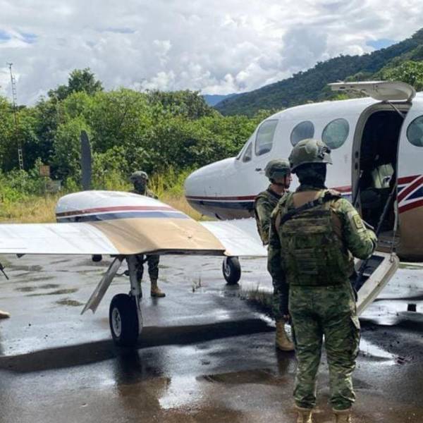 Militares encontraron bolsas con oro en una avioneta tipo Cessna que voló desde Guayaquil hasta una pista aérea de la parroquia Cumbaratza, cantón Zamora, provincia de Zamora Chinchipe, informaron las Fuerzas Armadas el 3 de mayo.