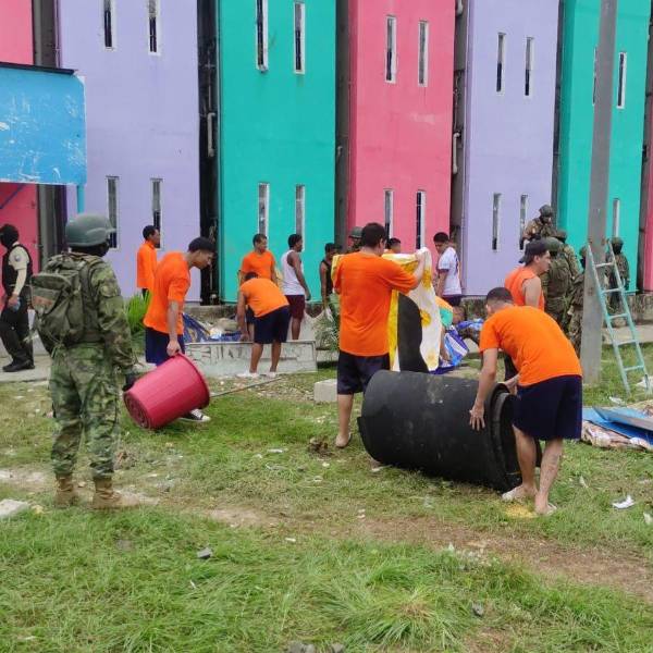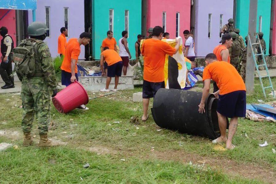 Según imágenes compartidas por el Comando Conjunto de las FF.AA., los reos están limpiando los pasillos del centro penitenciario, y han sacado sus pertenencias al patio para la revisión de los objetos.