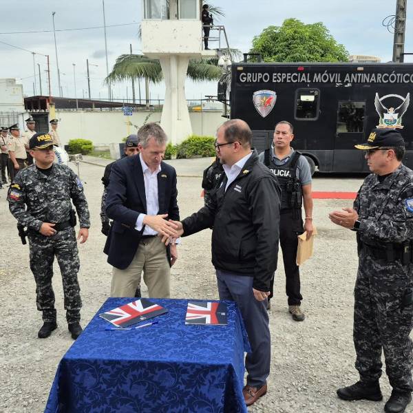 Este viernes, 23 de mayo, Reino Unido entregó equipos y firmó un memorando con Ecuador para cooperación en seguridad. El evento se realizó en el puerto marítimo de Guayaquil, en el sur de la ciudad.