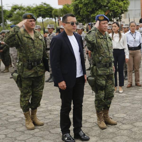 Imagen de Daniel Noboa junto a militares en una foto tomada en Manta, el 2 de abril del 2024.( )