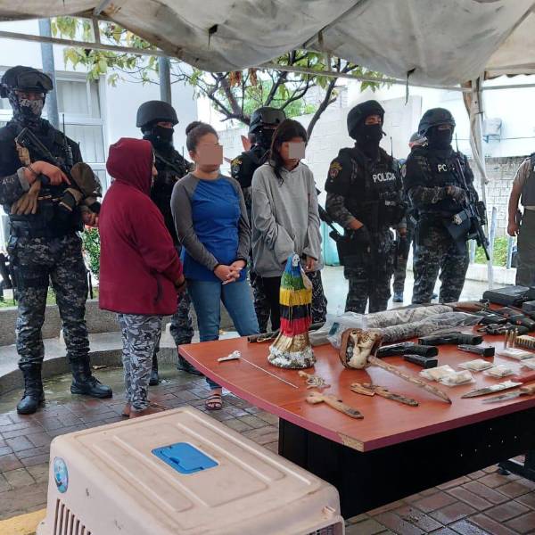 Con respecto a los indicios encontrados, los uniformados decomisaron un revólver, dos pistolas, dos fusiles, una escopeta, municiones, dos explosivos, cuchillos, droga, hachas, celulares, radios intercomunicadores, un ave exótica y figuras relacionadas a la Santa Muerte, según detalló el general Pablo Dávila, comandante de la Policía Nacional en la Zona 8 (Guayaquil, Durán y Samborondón).