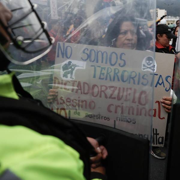 La Fundación Regional de Asesoría en Derechos Humanos (Inredh) denunció que, en la U. Central, se vivió una represión desmedida en las zonas de paz que se instalaron. "Exigimos que las Fuerzas Armadas y la Policía Nacional dejen salir a los estudiantes que se encuentran sitiados en la Universidad", indicó la organización.