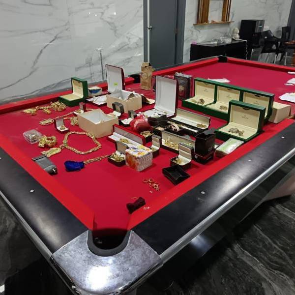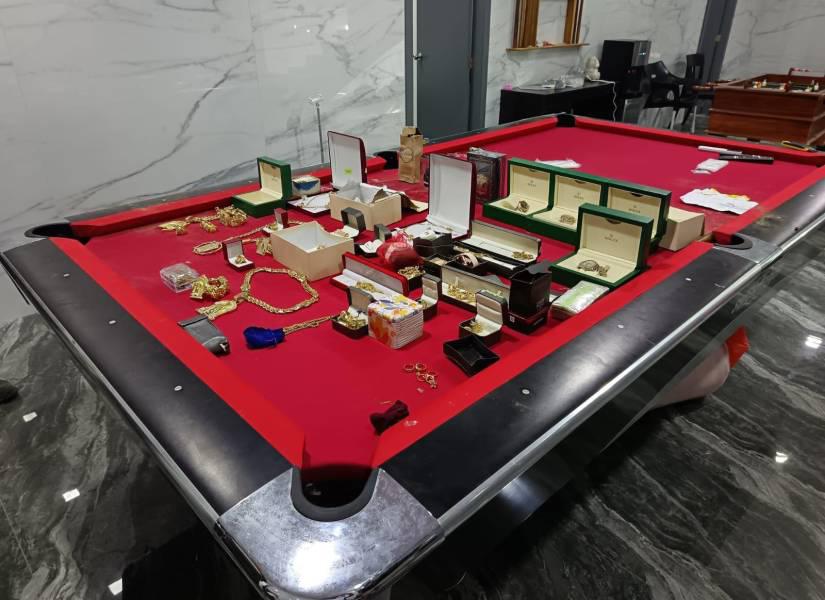 Imagen de cadenas, anillos y relojes hallados en la vivienda donde fue capturado alias Fito en Montecristi, Manabí.( )