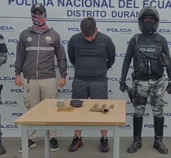La persecución policial quedó grabada en video por cámaras de vigilancia. En Durán, un hombre fue detenido con USD 10 000, un arma y municiones. Ocurrió el domingo 24 de agosto de 2025.