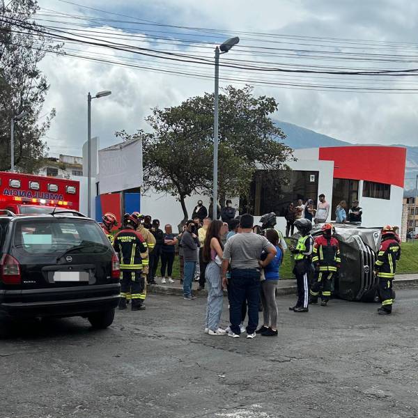 Un alertante informó que se registró el volcamiento de un automóvil. Desde la Sala Operativa se coordinó el envío de recursos del Cuerpo de Bomberos de Quito (CBQ) y de la Agencia Metropolitana de Tránsito (AMT) para ayudar a los afectados.