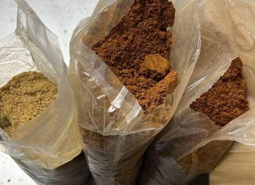 Con ayuda de un perro entrenado, identificaron unas cajas de cartón que contenían 10 fundas plásticas transparentes. De acuerdo a los registros, contenía panela granulada.