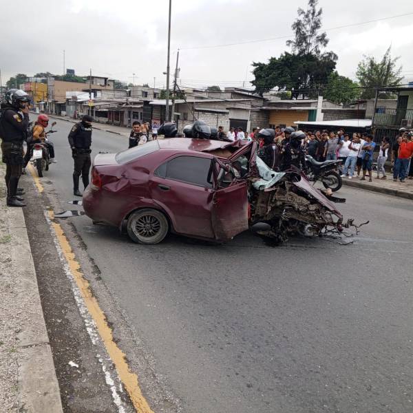 Imagen de un carro accidentado, tras chocarse con un poste de alumbrado, en el sector de Gallegos Lara, norte de Guayaquil.( )