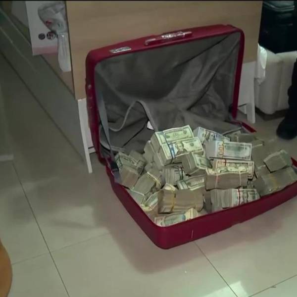 Imagen de una maleta llena de dinero encontrada en poder de una policía en un operativo en Daule, este viernes 15 de agosto.( )