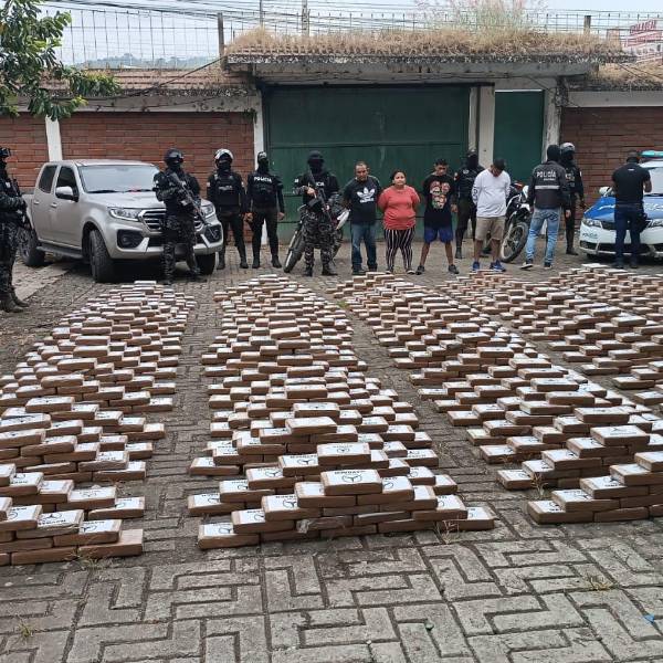 La Policía Nacional detuvo a cuatro personas en un allanamiento en el que fueron incautadas dos toneladas de cocaína en un sector de la comuna Petrillo, del cantón Nobol de Guayas.
