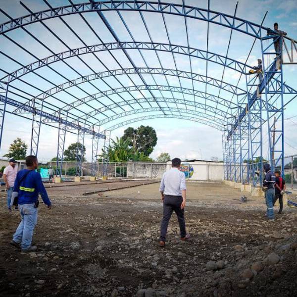 Imagen de la construcción del Complejo Deportivo en Ciudad del Norte, Quevedo, provincia de Los Ríos, del 18 de mayo del 2023.( )