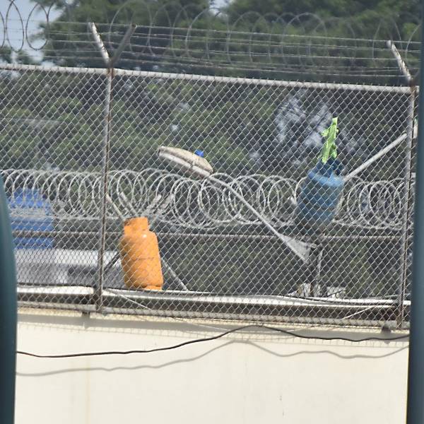 Al menos dos cilindros de gas se colgaron en los exteriores del centro penitenciario. ( )